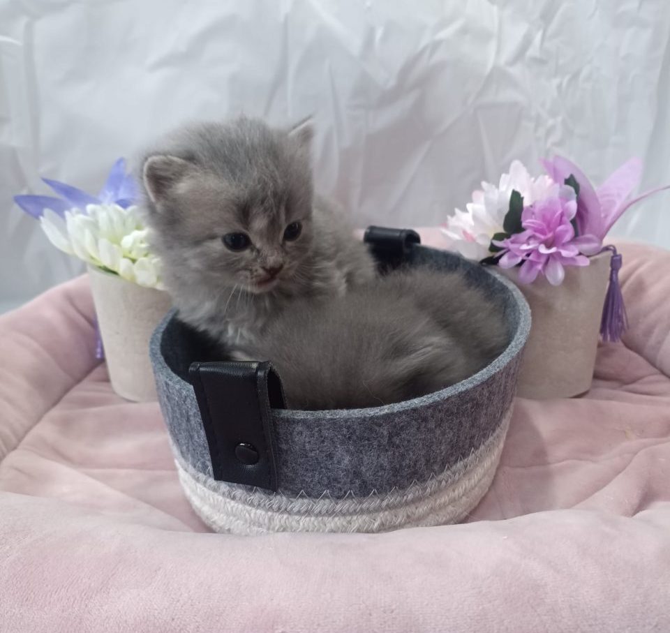 💖 お母さん譲りの淡いブルーシルバータビーの被毛は、光を受けてきらめく上品な美しさ。将来は見る人を惹きつける、優雅なレディになること間違いなしです。
