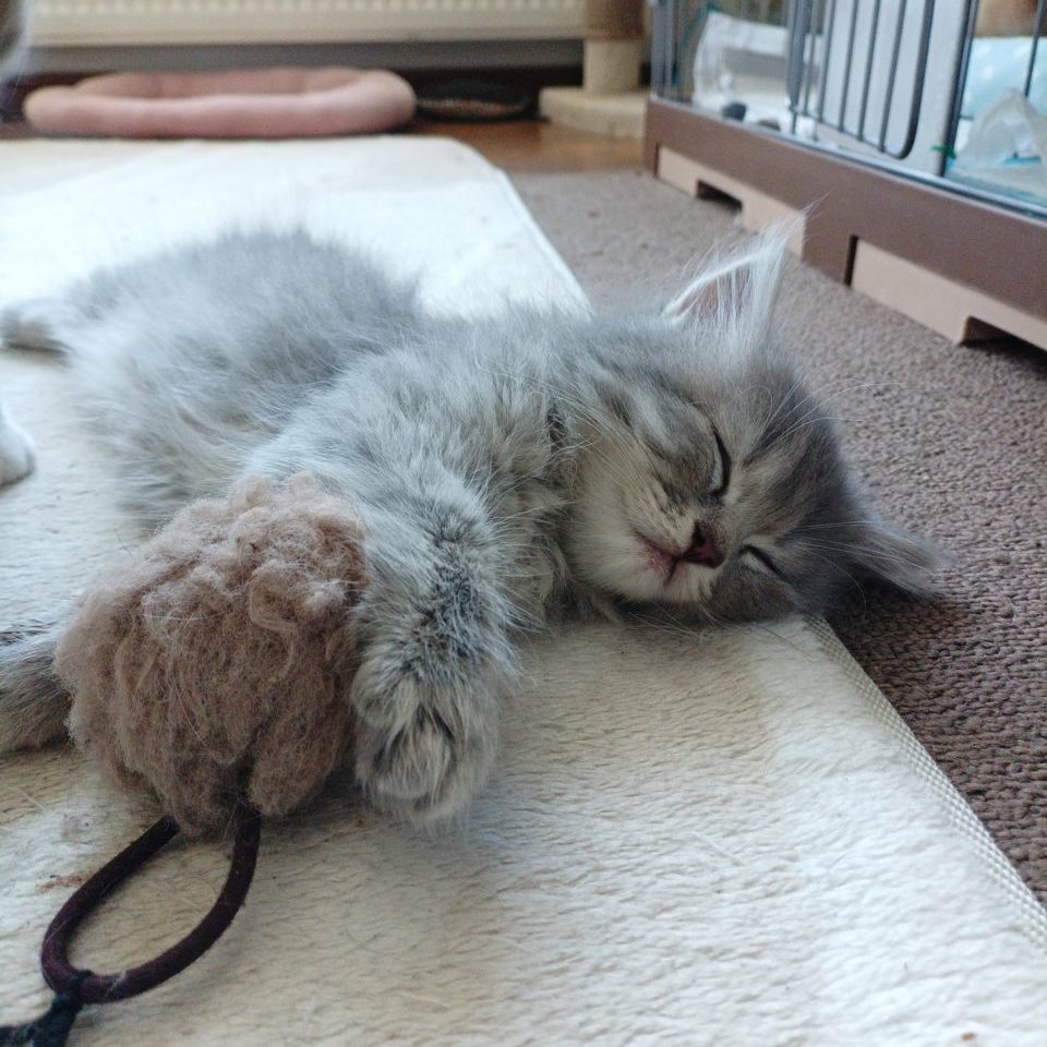 💪 きょうだいの中でも一番しっかりした体格の持ち主!お兄ちゃんと一緒に鬼ごっこするほど活発なおてんばさん💕お父さん譲りの持ち前の体力で、猫風邪にも負けず元気に成長しています。健康面も安心の、頼もしい子です。