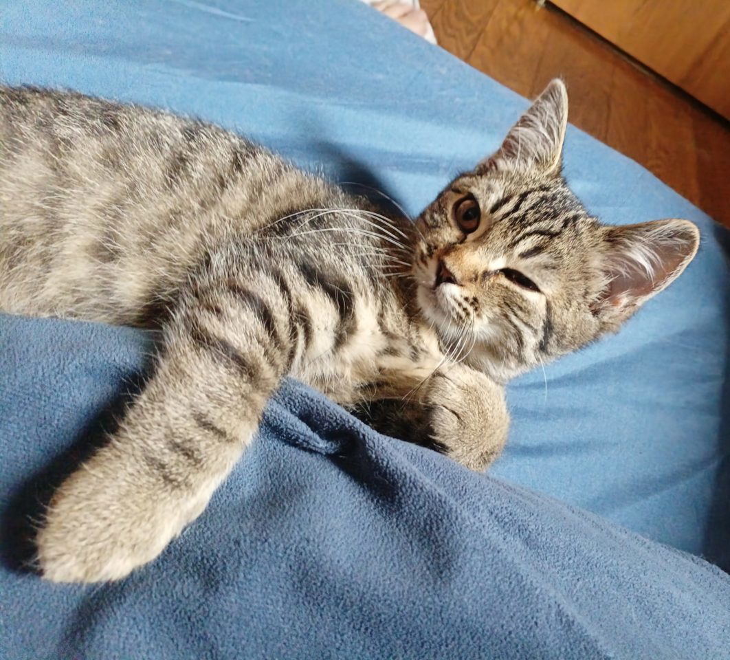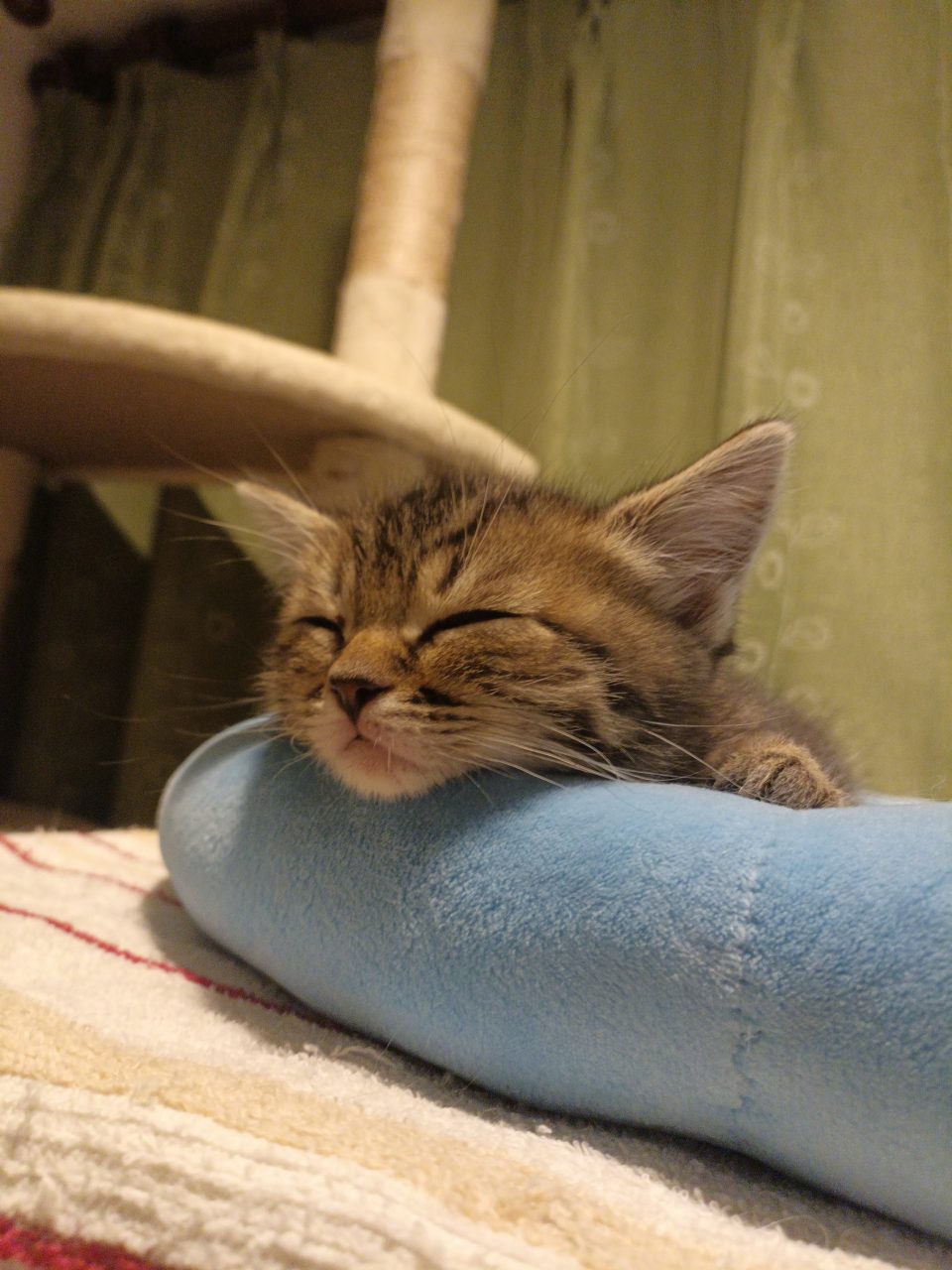 以前より少し落ち着きが出てきて、ご飯も上手に食べられるようになりました。遊び疲れて甘えてくる姿は、たまらない可愛さです。